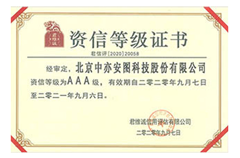 AAA資信等級證書