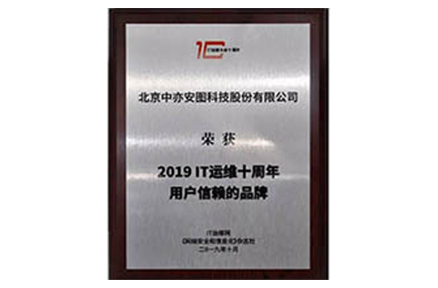 2019IT運維十周年用戶信賴品牌獎